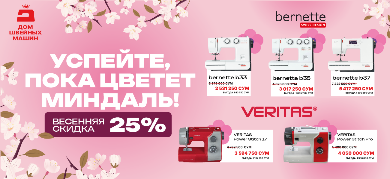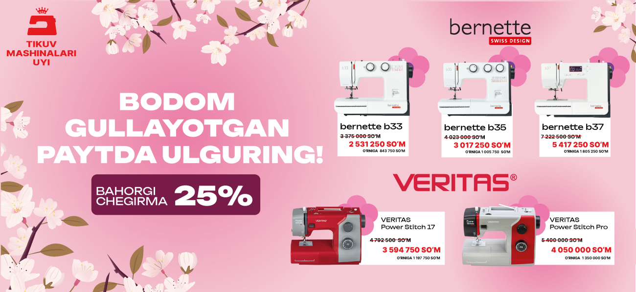 Bahorgi chegirma -25% tikuv mashinalariga!