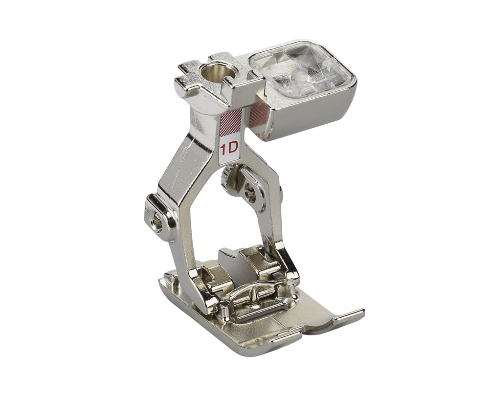 Лапка для реверсных стежков BERNINA #1D отлично подходит для выполнения строчек вперед и назад. С ее помощью удобно шить как рабочие, так и декоративные строчки, использовать для пришивания тесьмы, обработки кромок и работы с тяжелыми тканями, такими как бархат, джинса или шерсть.