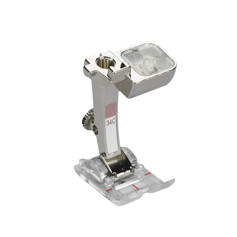 Лапка для реверсных стежков с прозрачной подошвой № 34C обеспечивает превосходный обзор зоны шитья и области иглы. Нанесённые на верхнюю часть лапки маркировки помогают выполнять работу особенно точно и аккуратно.