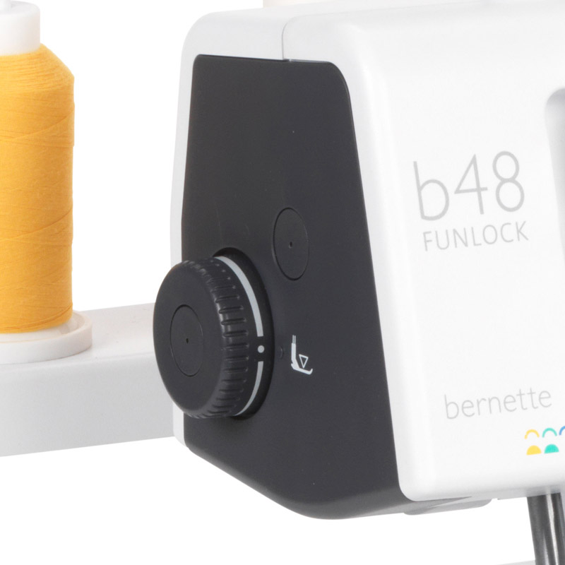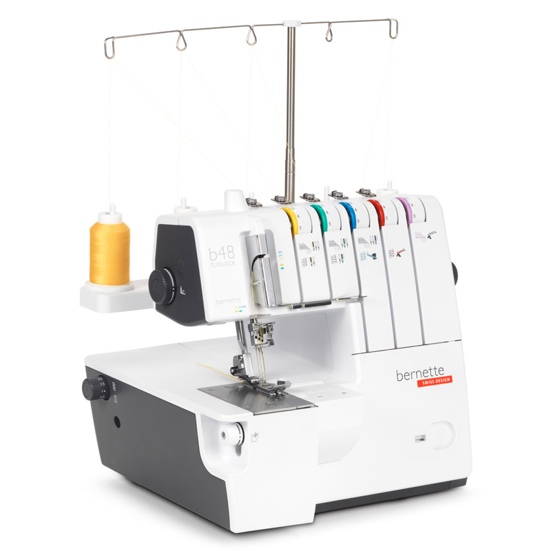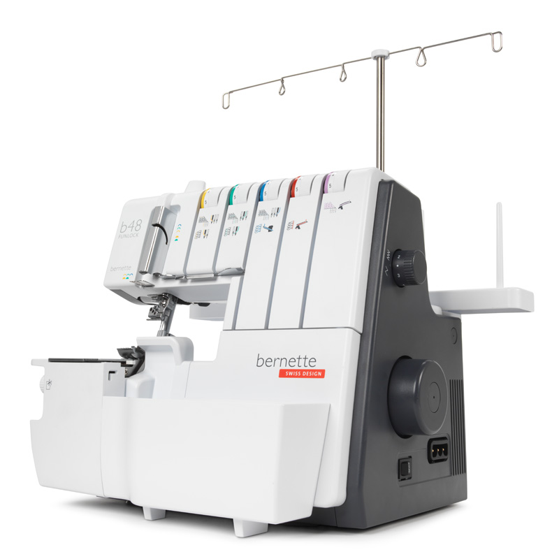 bernette 48 FUNLOCK — это универсальная комбинация оверлока и плоскошовной машины, объединяющая функциональность и надёжность. Модель выполняет 23 вида строчек: 15 оверлочных, 3 распошивальных, 4 комбинированных и 1 цепной, что позволяет легко справляться как с обработкой края, так и с созданием прочных соединительных швов. Нижний и цепной петлители оснащены механическим нитевдевателем, упрощающим процесс заправки. Нож с нижним приводом обеспечивает не только чистый и ровный срез, но и безопасность в работе, а регулировка одной рукой делает управление ещё удобнее. bernette 48 FUNLOCK развивает скорость до 1300 стежков в минуту, позволяя быстро выполнять даже сложные проекты.