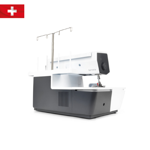 Модель оснащена свободным рукавом, который облегчает обработку манжет, рукавов и других узких деталей. Просторная рабочая поверхность справа от иглы и выдвижной столик создают дополнительный комфорт при работе с крупными изделиями. Пять светодиодов обеспечивают яркое и равномерное освещение всей рабочей зоны, а система «свободные руки» bernette позволяет опускать и временно поднимать прижимную лапку, оставляя руки свободными для управления тканью.