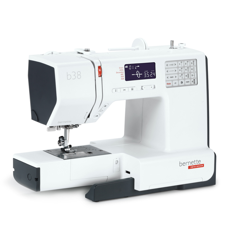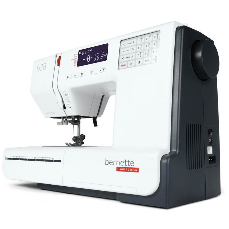 Топовая модель bernette b 38 в новой серии — компьютеризированная швейная машина, предлагающая широкий набор функций по доступной цене. В её арсенале 394 различных строчки, включая 67 декоративных, 8 видов автоматических петель и 3 алфавита. Функция памяти позволяет сохранять индивидуальные комбинации строчек, а встроенный регулятор скорости удобно настраивается прямо на дисплее.