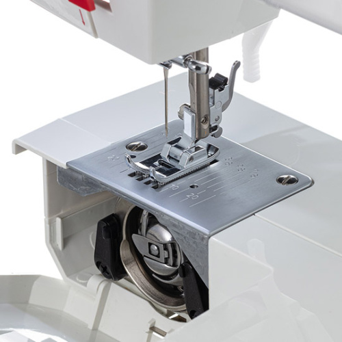 Машина предлагает 13 программ, которые можно регулировать по длине, что облегчает работу с легкими тканями (такими как шифон) и тяжелыми тканями (такими как вельвет). При втачивании молнии положение иглы для прямой строчки можно установить так, чтобы обработать край с особой точностью. Благодаря простому и понятному управлению, VERITAS Sarah не требует времени для привыкания. Нужная программа выбирается с помощью регулятора, расположенного справа, а желаемая длина стежка от 0 до 4,2 мм - с помощью левого.