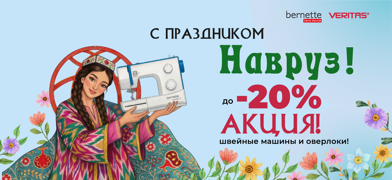 Почти у каждого человека есть любимое занятие, которому он посвящает свое свободное время. Многим людям нравится заниматься шитьем, создавать одежду или авторские аксессуары, кто то занимается декорированием одежды или увлекается такими новыми направлениями, как пэчворк и квилтинг. А еще - это прекрасная возможность организовать свой бизнес и зарабатывать. У Вас много идей, но нет швейной машины, которая позволила бы их воплотить в реальность? Дом Швейных Машин - является эксклюзивным официальным представителем швейного оборудования на территории Республики Казахстан и Средней Азии великолепных марок BERNINA, bernette (Швейцария) и VERITAS немецкого качества.